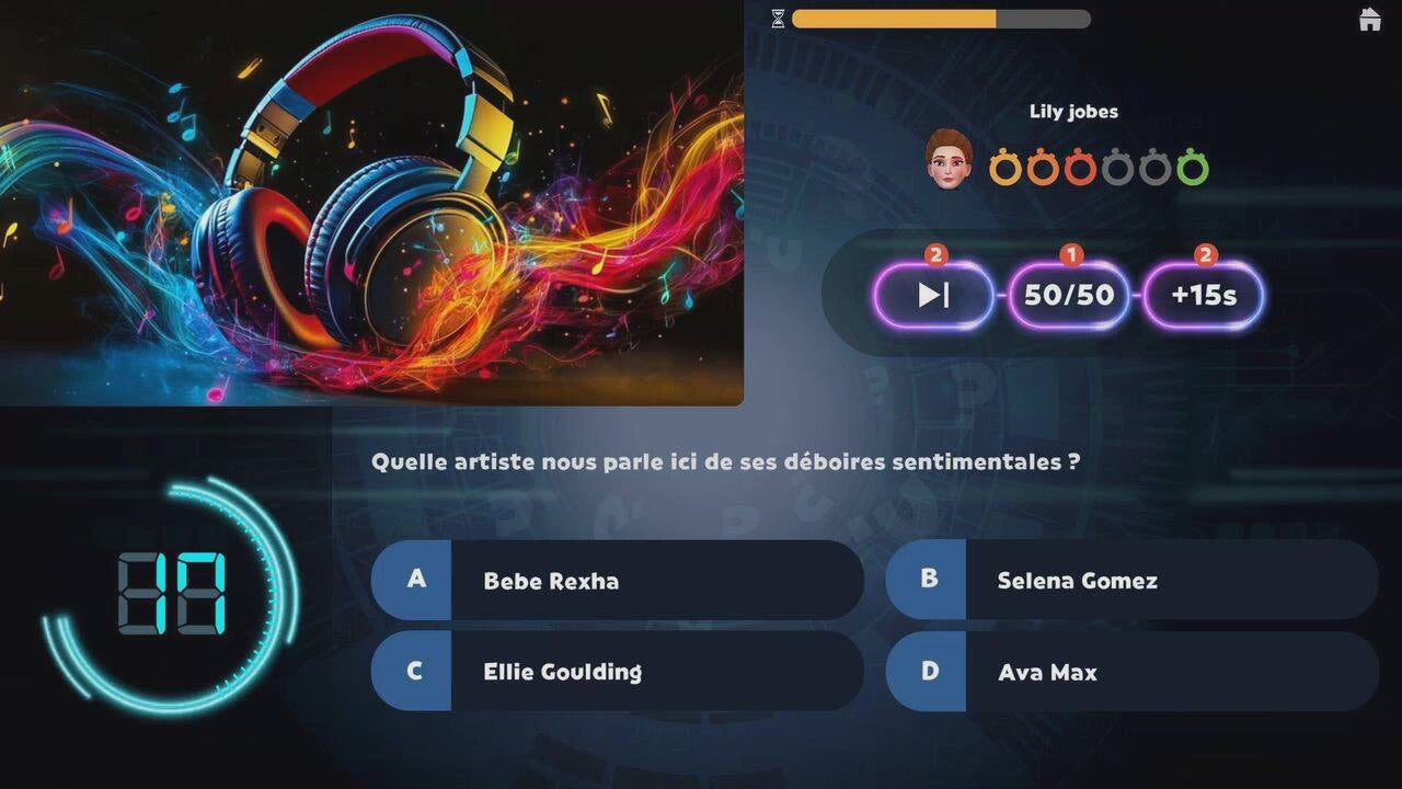 Plongez au cœur de la scène musicale actuelle avec cette catégorie qui teste vos connaissances sur les derniers morceaux pop, hip-hop, rock ou encore EDM à succès. Dansez sur les sons du moment en compagnie de vos proches avec nos questions accompagnées d’un extrait audio de 30 secondes, et prouvez que vous êtes toujours la personne la plus en vogue de votre entourage !